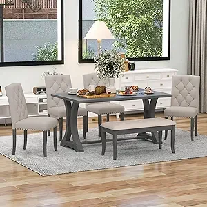 - Stable and sturdy structure: This set table is made of medium density fiberboard and rubberwood, with an X-shaped base and a dining table that runs through the tenons, making it more stable and durable.
